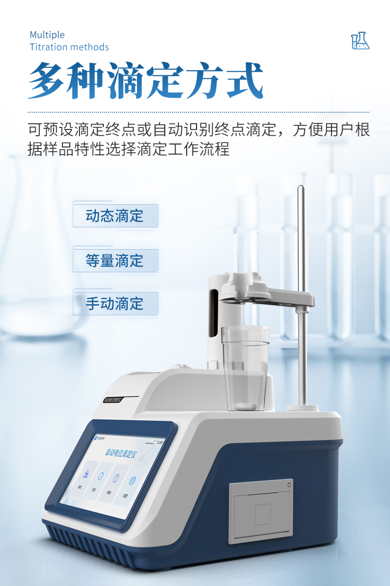 4、支持動態滴定、等量滴定、手動滴定的滴定方式,可預設滴定終點或自動識別終點滴定,方便用戶根據樣品特性選擇**滴定工作流程;
