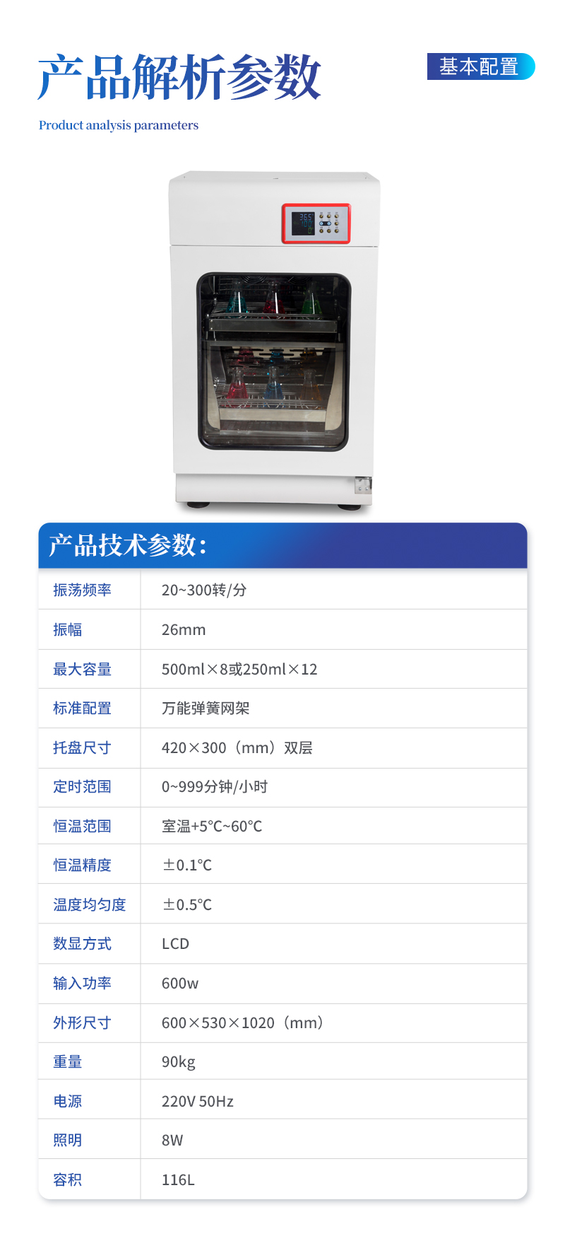 技術參數LY1恒溫振蕩培養箱(雙層)