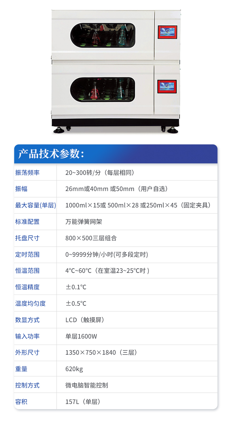 | 振蕩頻率 Oscillation frequency | 20~300轉(zhuǎn)/分(每層相同)20~300rpm |
