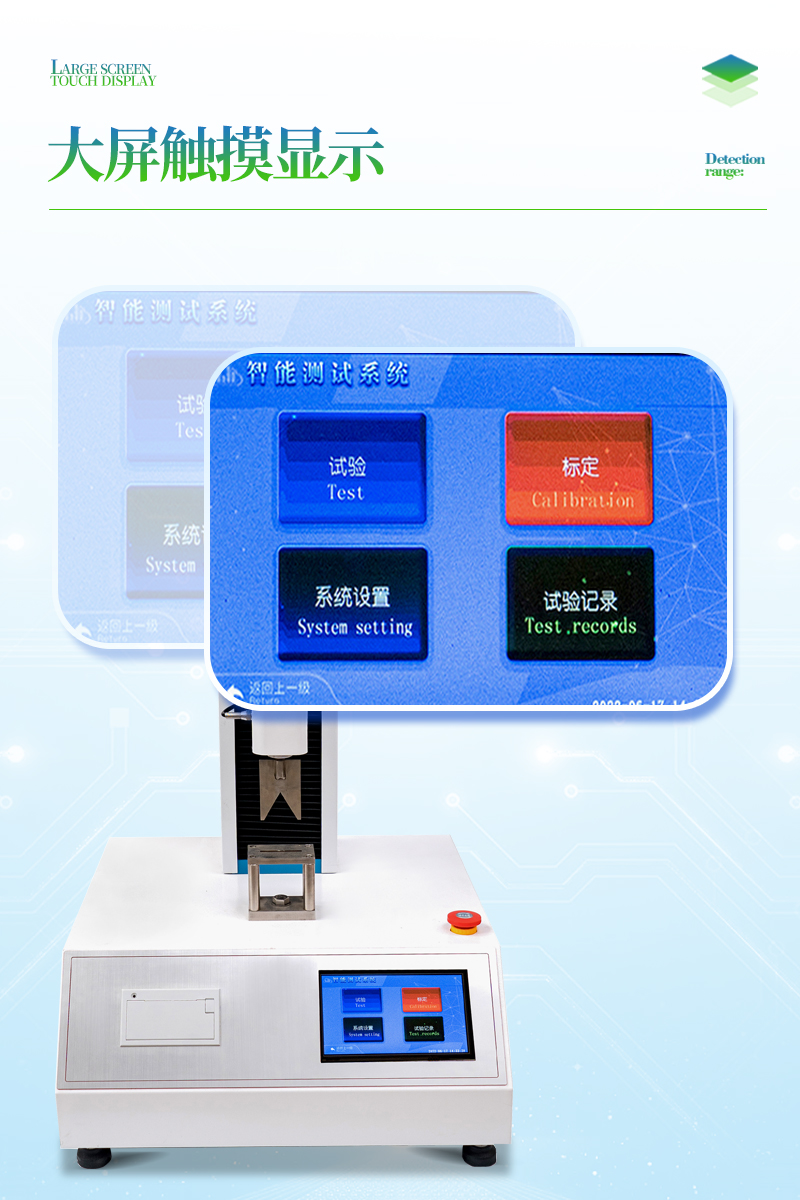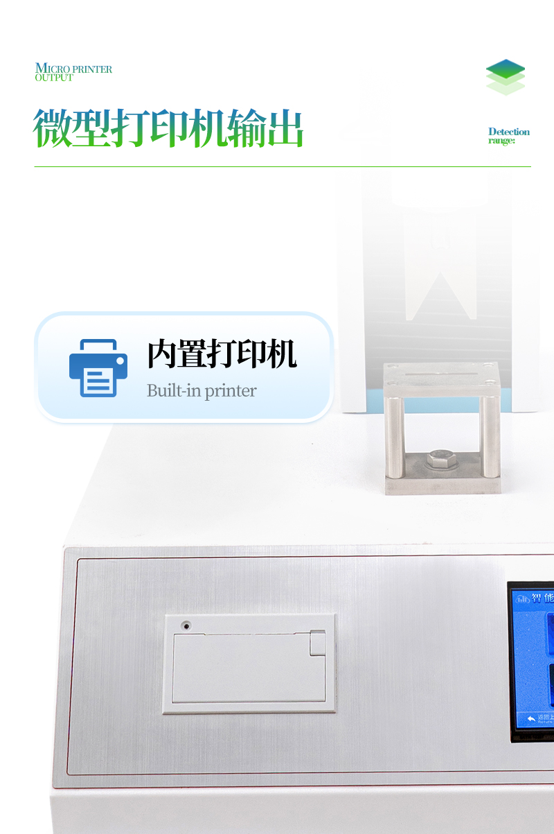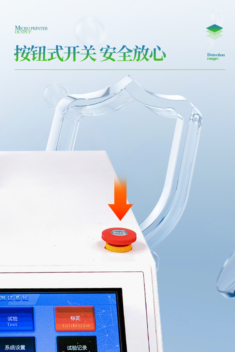 3、大觸摸屏中文顯示,友好人機界面操作。全自動完成測試。操作方便,具有測試數據統計處理功能,微型打印機輸出。