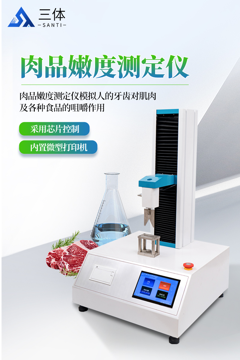 肉品嫩度測定儀原理:嫩度是指肉在切割時所需的剪切力。剪切力是指測試儀器的刀具切斷被測肉樣時所用的力。通過測定儀器測傳感器記錄刀具切割肉樣時的用力情況并把測定的剪切力峰值(力的值)作為肉樣嫩度值。