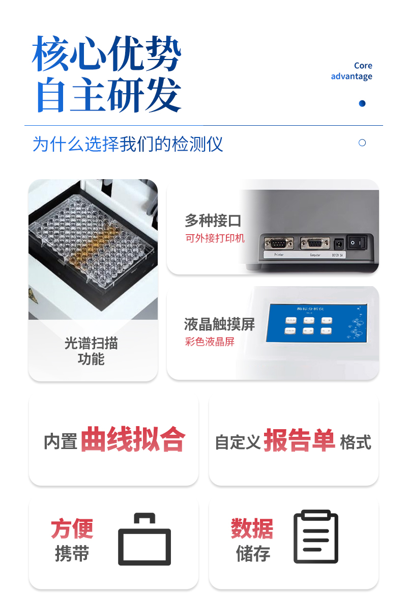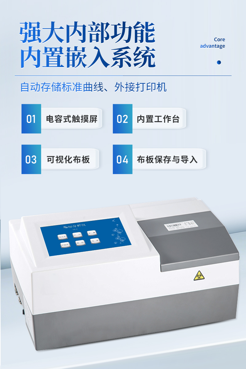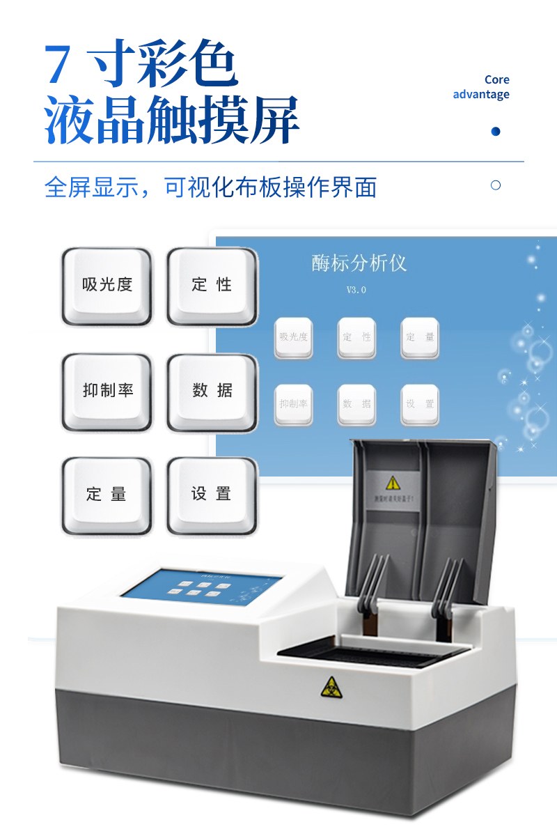 產品特點回設計精巧、操作簡單、攜帶方便 回7時彩色液晶顯示、觸摸屏操作回板面可視化布板、測量數據整板顯示回中心定位、數據準確、穩定性好、重復性好回終點法、動力學法、抑制率、單/雙波長測量回采用寬電壓設···